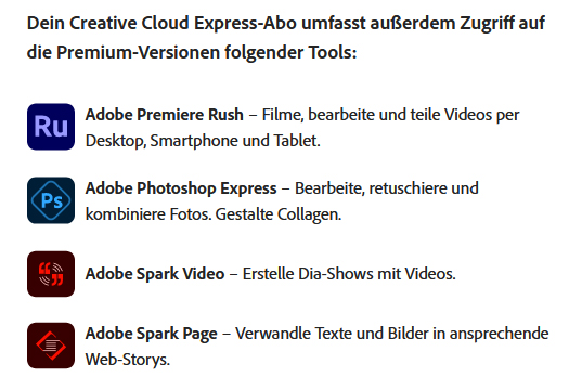 (Adobe Spark Video und Adobe Spark Page sind nur für iOS verfügbar)