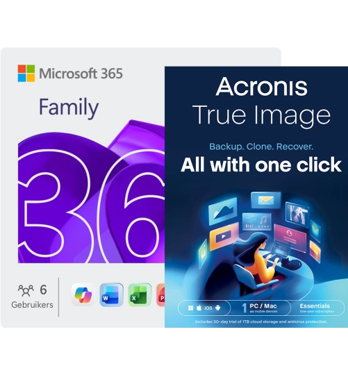 Microsoft 365 Family + Acronis True Image Essentials | 1 PC | 1 Jaar