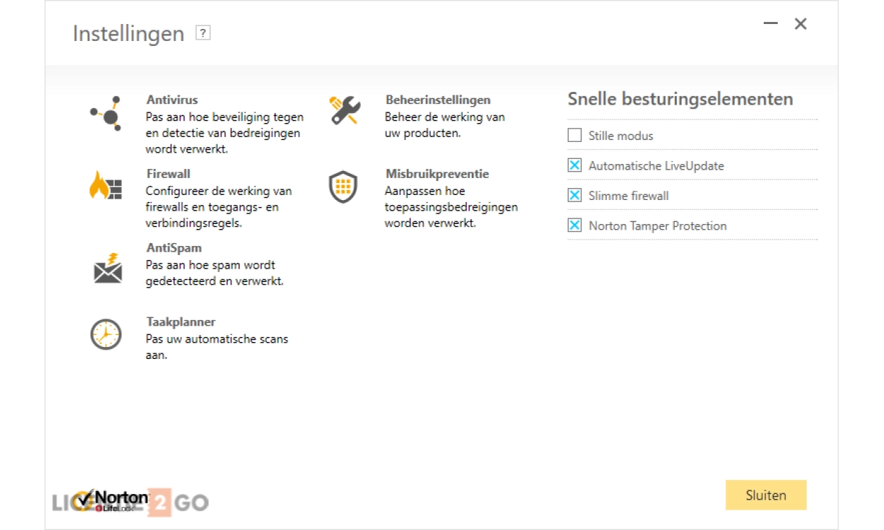 | Beschikbare modules | Firewall, Privacy bescherming, Ransomwarebescherming, Spamfilter, Veilig bankieren, Veilig browsen |
